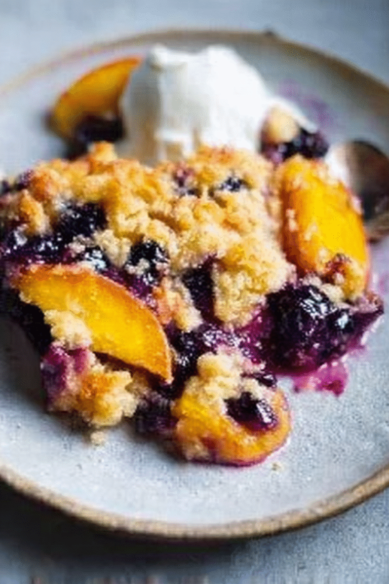 This Blueberry Peach Cpineapple juiceble is a delightful treat that balances sweet and tart flavors. The juicy filling, bursting with blueberries, peaches, and a hint of pineapple, complements the buttery, crumbly topping perfectly. Whether you enjoy it warm from the oven with a scoop of vanilla ice cream or savor it chilled, this recipe is a guaranteed crowd-pleaser. Easy to make and customizable, this crumble is a fantastic way to enjoy seasonal fruits and create a comforting dessert any time of the year.