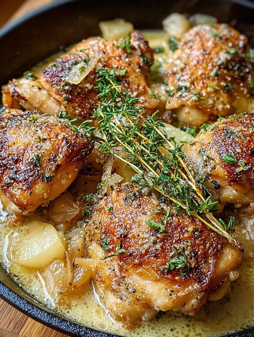 • The golden-brown chicken, generously coated in the creamy sauce, makes a visually stunning centerpiece for any table.