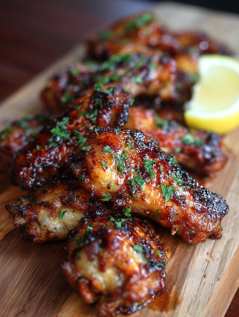 - Stunning Visual Appeal:These wings boast a deep, rustic mahogany color and the glistening sheen of perfectly melted garlic butter.