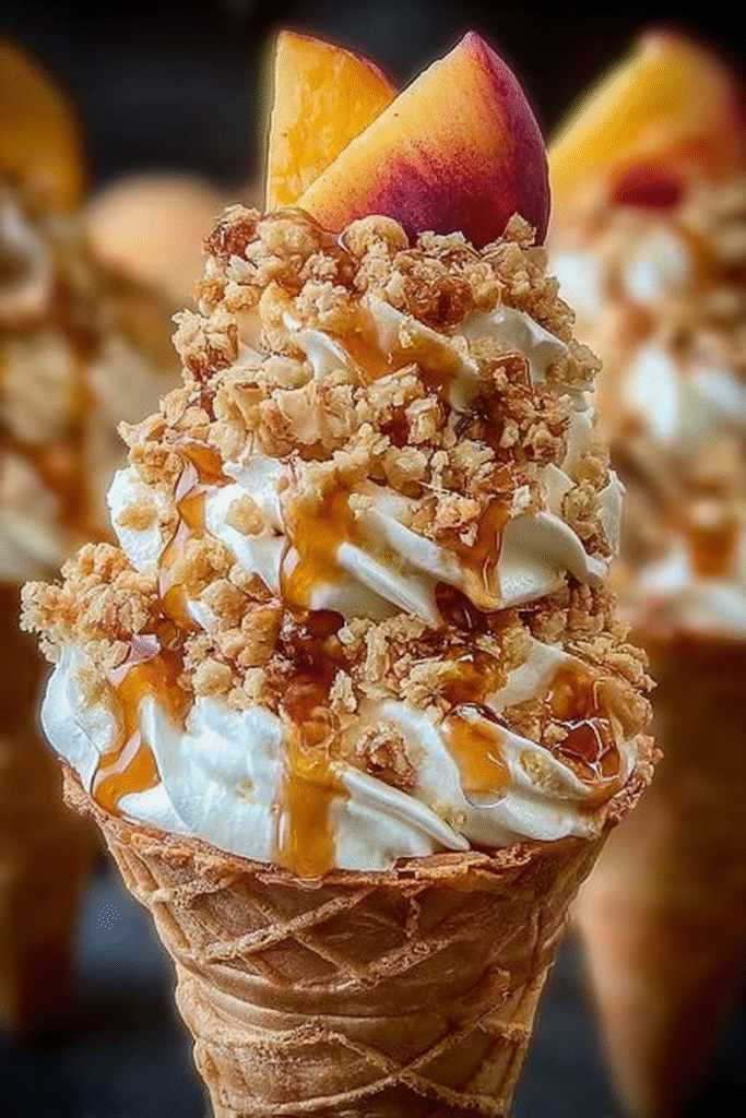 Imagine the sweet scent of summer peaches meeting creamy New York style cheesecake, all nestled inside a crunchy cone—that is the magic of Peach Cobbler …