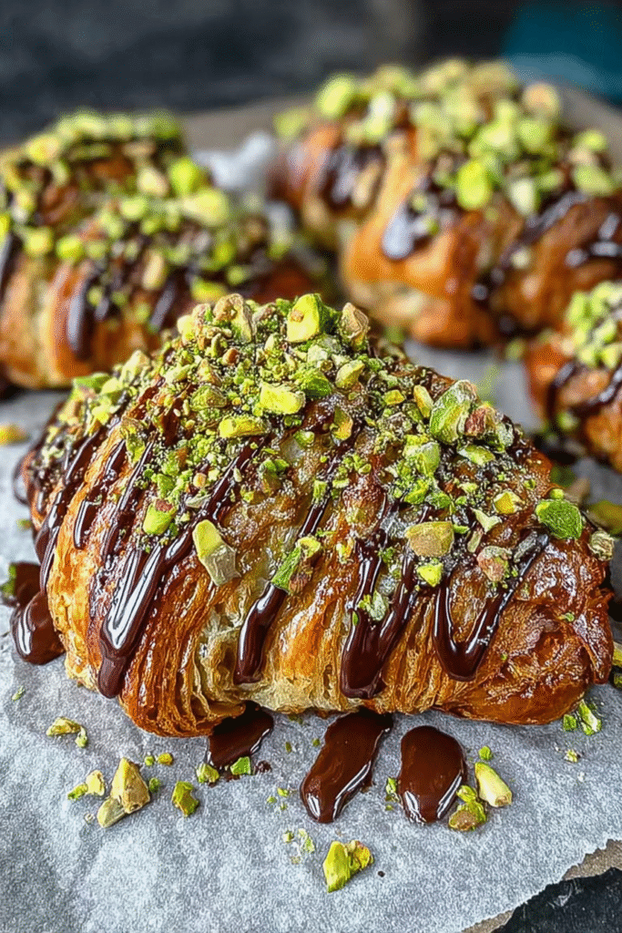 Imagine the irresistible crunch of golden, buttery layers yielding to a molten center of dark chocolate and bright green pistachio cream; this is the dream …
