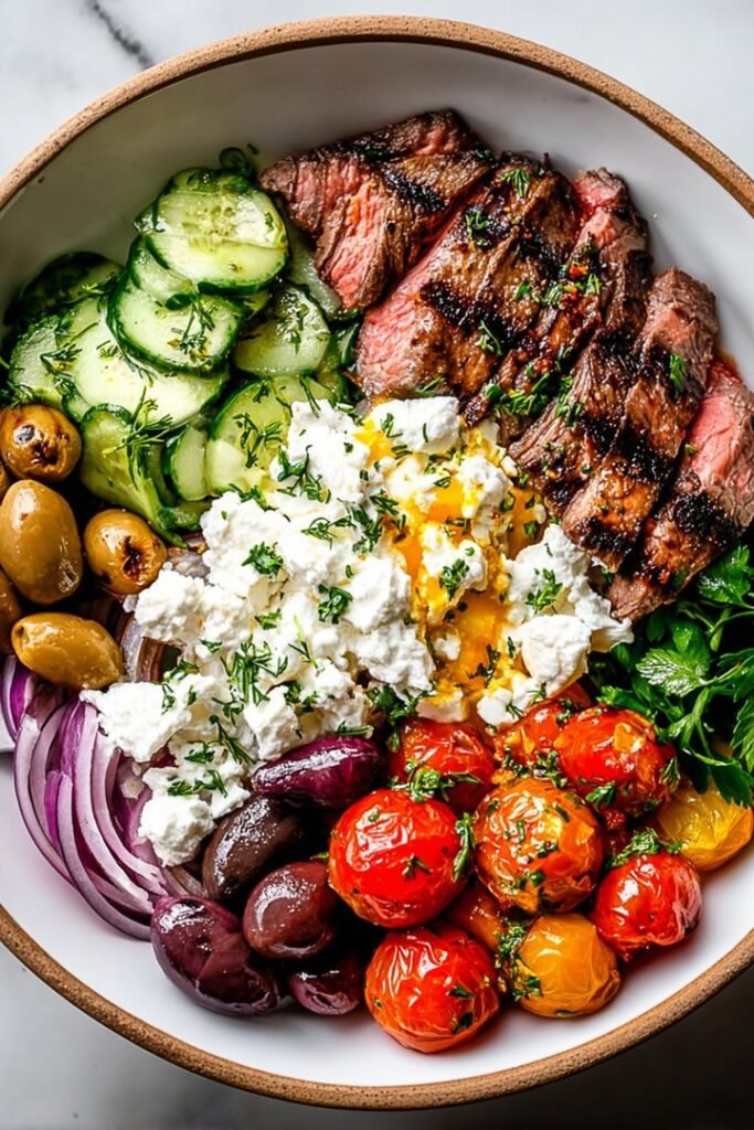 Imagine sinking your teeth into tender, perfectly seasoned steak, nestled amongst a vibrant medley of fresh vegetables, creamy hummus, and tangy feta. It’s a flavor …