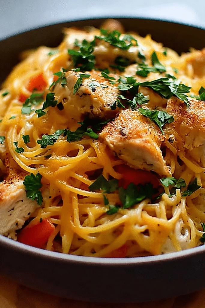 Easy Chicken Spaghetti: a symphony of flavors, where tender chicken meets perfectly cooked spaghetti in a creamy, dreamy sauce that will transport your taste buds …