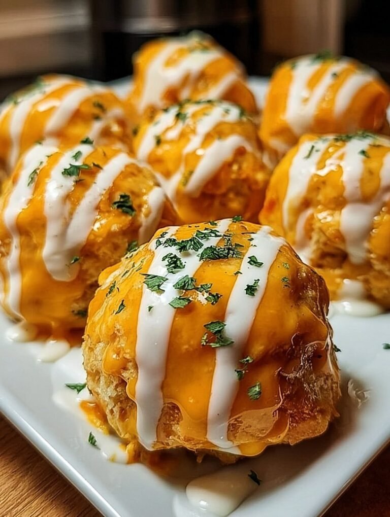 Let’s face it: we’ve all been there. You need a snack that doesn’t just satisfy a craving; it detonates it. You want something spicy, creamy, ridiculously cheesy, and easy enough to make without missing the good parts of the movie. Enter the legendaryCheesy Buffalo Ranch Chicken Bombs. These aren’t just appetizers; they are individual pockets of pure, unadulterated flavor chaos. Imagine savory shredded chicken mixed with tangy buffalo sauce and cool ranch seasoning, all bundled up with gooey mozzarella, and baked until golden brown. They are so good, you might accidentally forget to share them.