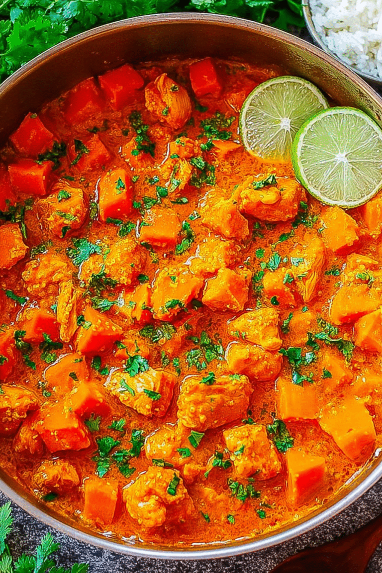 Delicious chicken sweet potato curry recipe with detailed instructions and nutritional information.