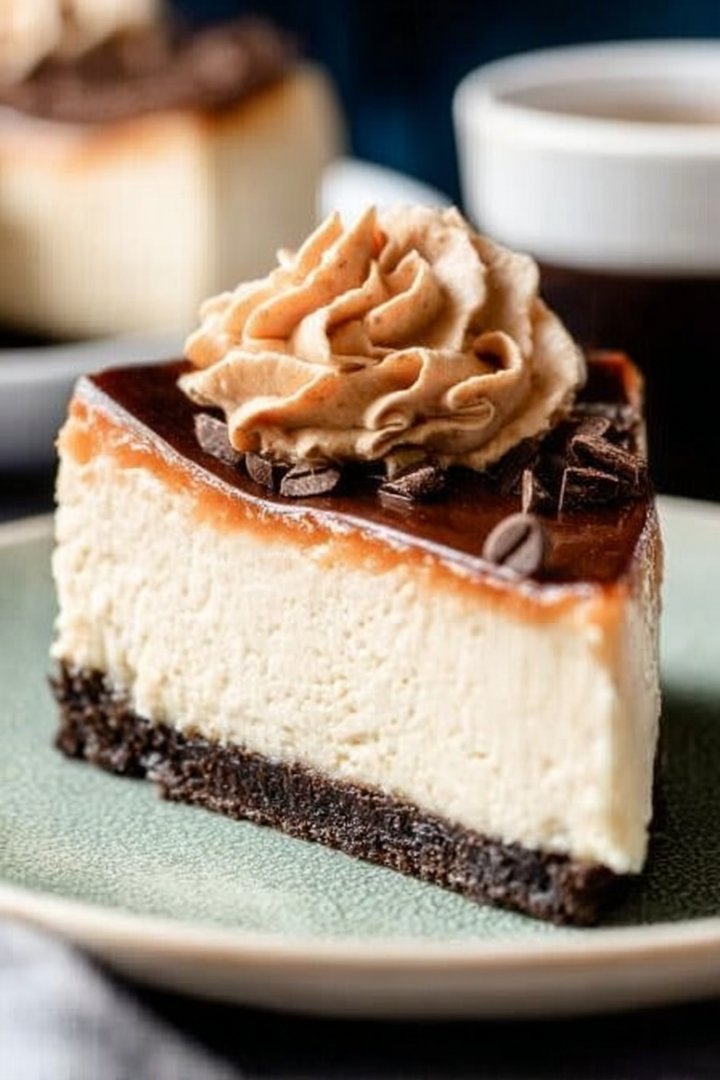 Garnish with whipped cream, chocolate shavings, or coffee beans for an extra touch of elegance. Slice and serve this delightful coffee cheesecake for the perfect dessert!