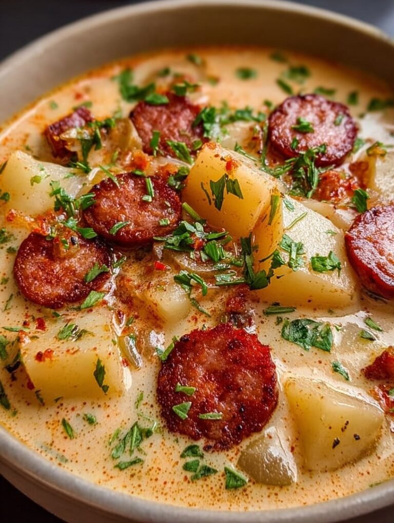 I needed drama. I needed flavor that screamed, “We’re having a party!” even if that party consisted only of me, my cat, and a mountain of fuzzy blankets. That’s how the idea for this magnificent, velvety concoction was born: the ultimateCreamy Cajun Potato Soup with Beef Sausage. It is robust, smoky, and dangerously smooth, capturing the spirit of Louisiana heat and translating it into pure, blissful comfort.
