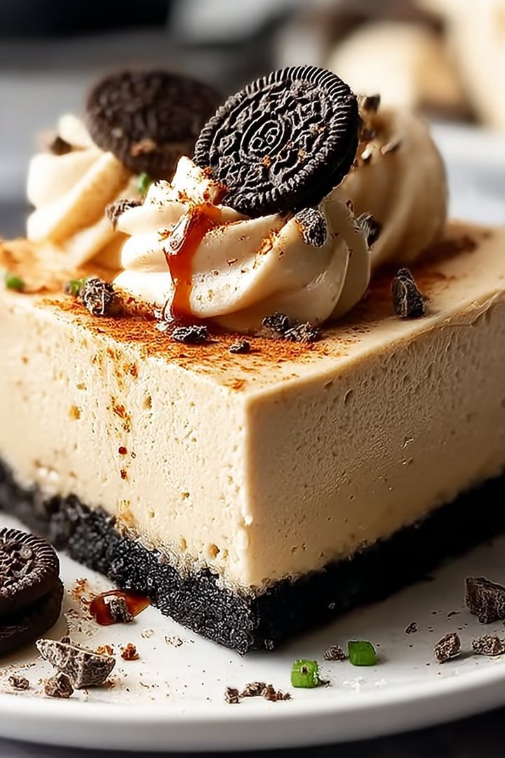 Before serving, remove the cheesecake from the springform pan. Garnish with whipped cream, chocolate shavings, or a dusting of cocoa powder. Slice and serve chilled for the ultimate creamy coffee cheesecake experience.