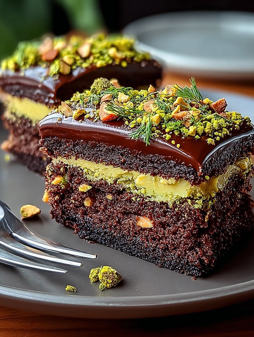 Refrigerate the cake for at least 30 minutes to allow the ganache to set. Slice and serve, garnished with extra chopped dates or a dusting of cocoa powder for an elegant touch. This **Dubai Chocolate Cake** pairs perfectly with a scoop of vanilla ice cream or a cup of hot coffee. Enjoy!
