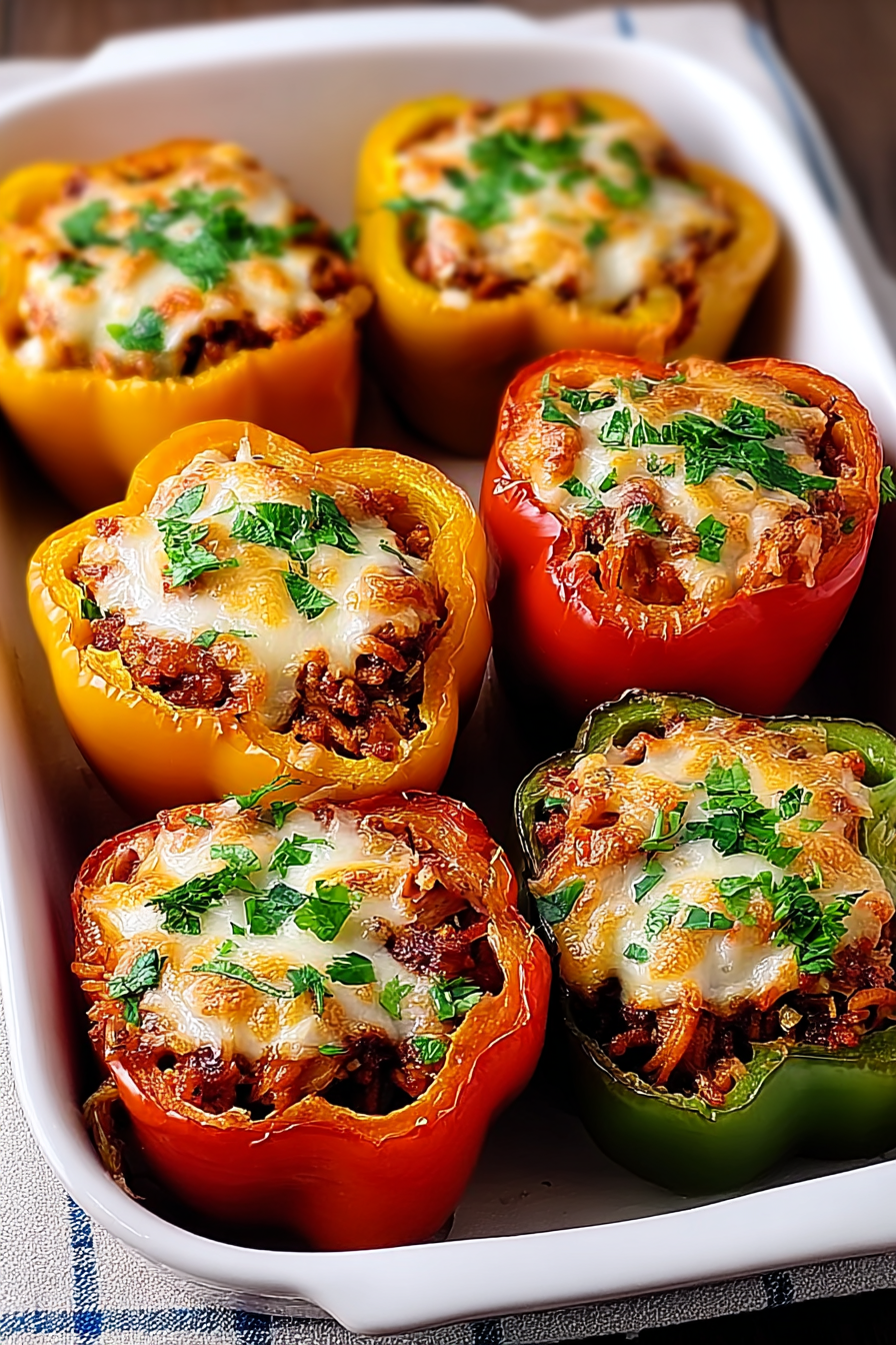This recipe is a flavor explosion waiting to happen, offering a delightful combination of textures and aromas that will tantalize your taste buds and leave you craving more. Whether it’s a cozy family dinner or a fun gathering with friends, these stuffed peppers are guaranteed to steal the show.
