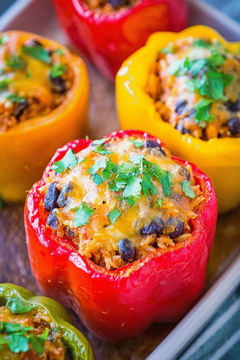 Easy Vegetarian Stuffed Bell Peppers with Rice