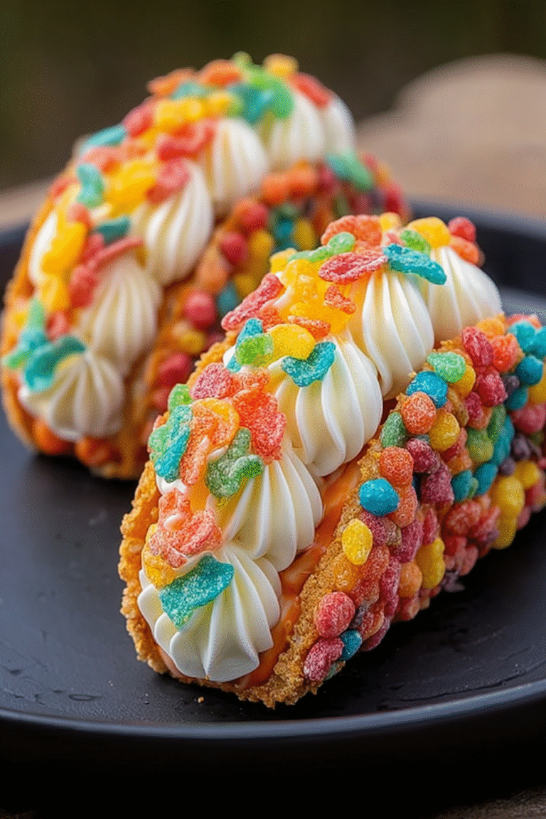 Leftover Fruity Pebbles Cheesecake Tacos should be stored in an airtight container in the refrigerator. They’re best enjoyed within two days. While the shells might soften a bit, the cheesecake filling will remain delicious. If you want to maintain optimal crispness, consider storing the shells and filling separately and assembling them right before serving. Remember, even slightly soggy tacos can still be incredibly tasty!