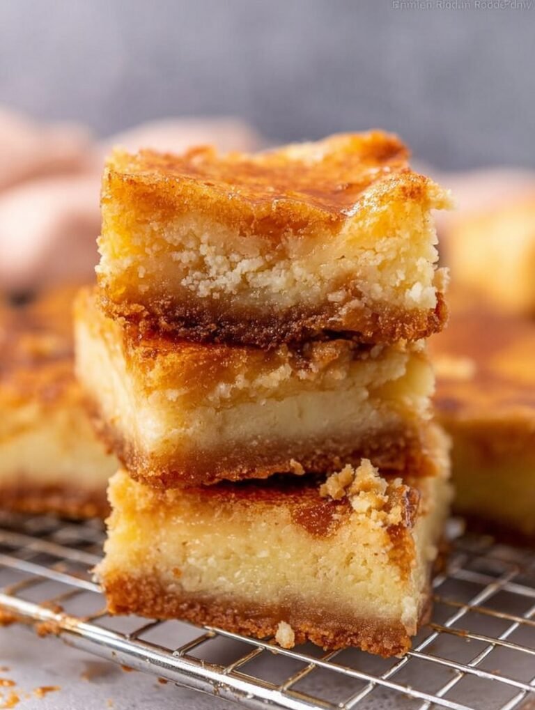 These truly remarkable Gooey Butter Cake Bars represent the pinnacle of comfort desserts: simple to make, yet profoundly satisfying to eat. They require minimal kitchen effort but deliver a taste that suggests you spent hours slaving away. Remember the key techniques—do not overbake, ensure your cream cheese is smooth, and let them cool completely before slicing. Whether you serve them at a holiday gathering or hoard them for a quiet afternoon snack, these buttery squares promise a moment of pure, sticky, sugary bliss. Go forth and embrace the wonderful messiness of St. Louis baking; your taste buds will send you a thank you note.