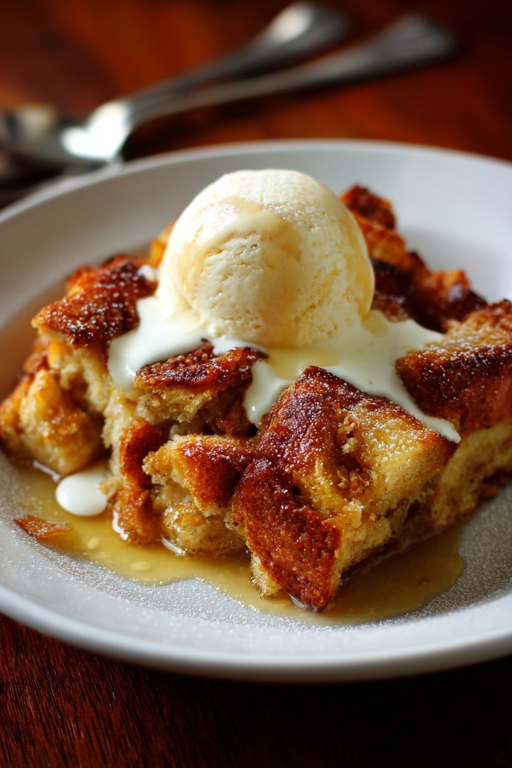 • **Vanilla Ice Cream:** The classic pairing! The cold ice cream melts into the warm bread pudding, creating a symphony of flavors and textures.