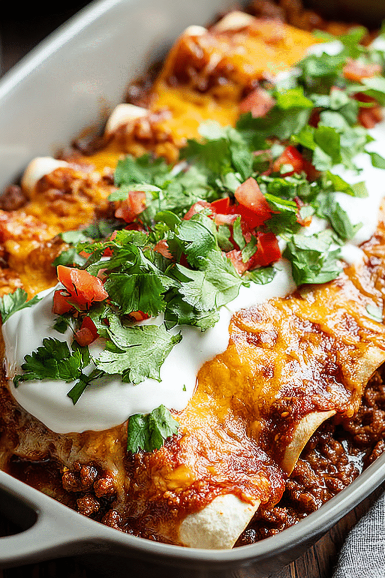 Imagine sinking your teeth into a warm, cheesy, savory bite of pure comfort. That’s exactly what these Ground Beef Enchiladas deliver, a symphony of flavors that dance across your palate.