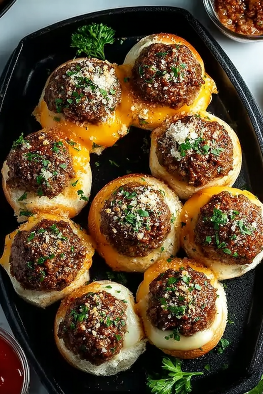 The reign of the messy, towering burger is officially over. The Irresistible Garlic Parmesan Cheeseburger Bombs are the future of game-day snacks and easy weeknight dinners, offering all the satisfying flavor of a classic cheeseburger encapsulated in a neat, golden package. By utilizing simple ingredients and following the straightforward preparation steps, you guarantee a perfect, cheesy, buttery crust every single time. They require minimal cleanup, travel well, and deliver a spectacular flavor payoff thanks to that powerful garlic Parmesan coating. Embrace the convenience and culinary genius of these savory bombs; your guests and your laundry will thank you.