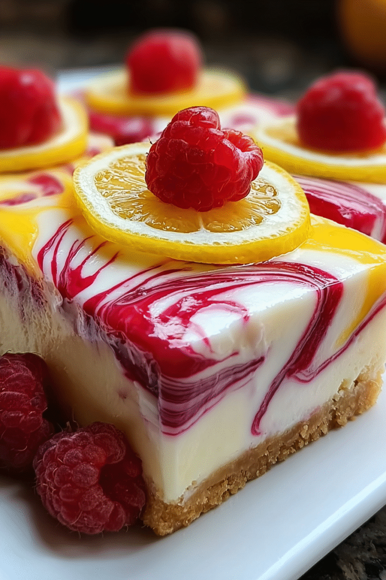 Picture this: a creamy, dreamy cloud of cheesecake, kissed with the bright tang of lemon and swirled with the sweet-tart burst of raspberries. It’s the kind of dessert that makes your taste buds sing a happy little tune.