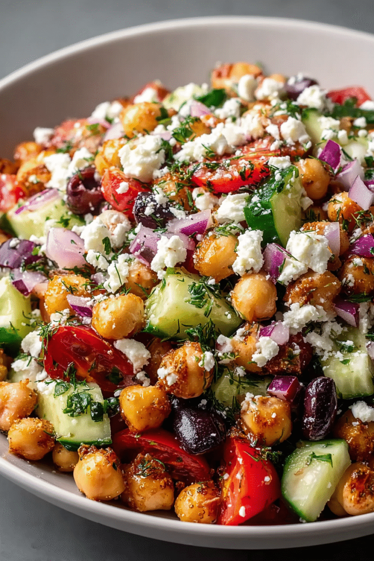 Oh, friends, let’s talk about the **Mediterranean Chickpea Feta Salad**. Not just any salad, mind you, but the kind that makes you want to do a little happy dance while you’re chopping veggies. It’s vibrant, it’s fresh, it’s the culinary equivalent of sunshine in a bowl. I stumbled upon this recipe during my “Operation Pantry Cleanout” phase, which, let’s be honest, happens more often than I’d like to admit. I had a can of chickpeas staring back at me, a block of feta begging to be used, and a fridge drawer full of veggies just waiting to be transformed. And thus, a star was born.
