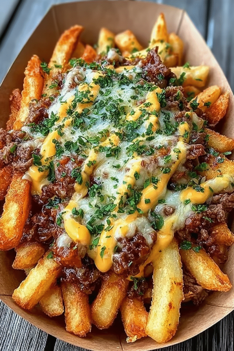 These golden fries, crowned with mounds of glistening steak and dripping sauce, look exactly like the glorious, indulgent comfort food they truly are.