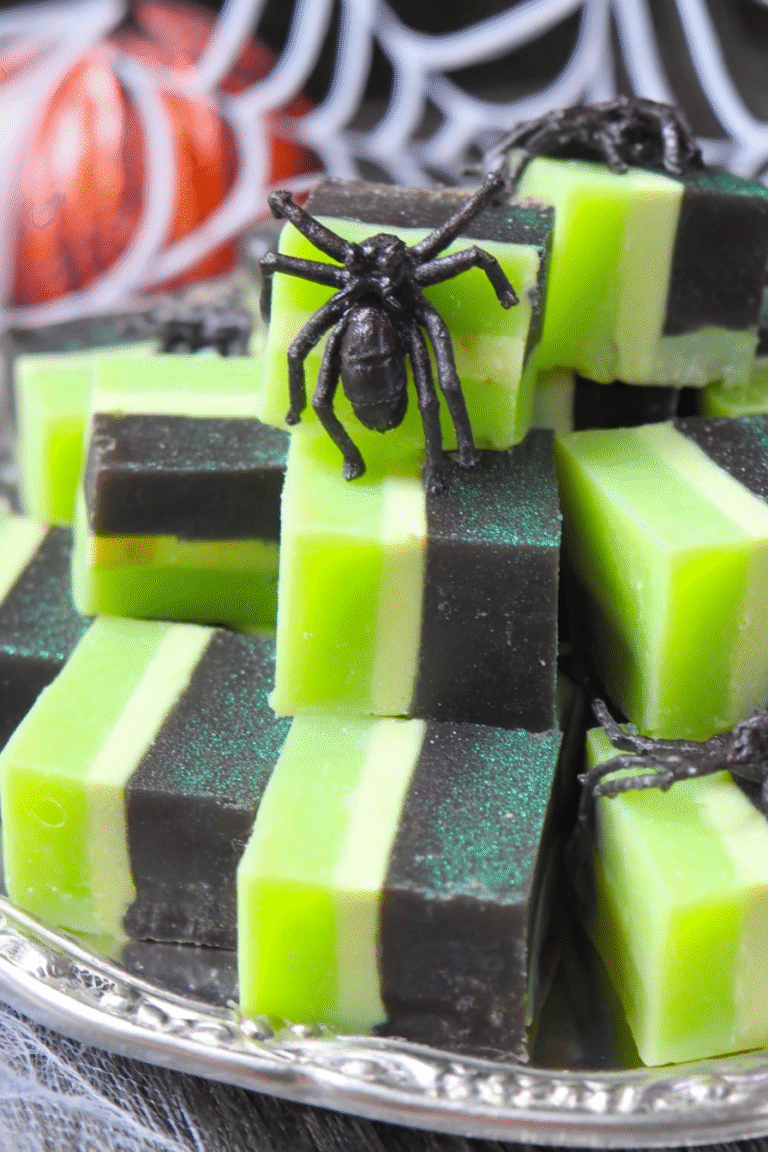 Once the fudge is firm, use the parchment paper overhang to lift it out of the pan. Cut the fudge into squares and serve. Enjoy this spooky, sweet treat that’s perfect for Halloween or any festive occasion.