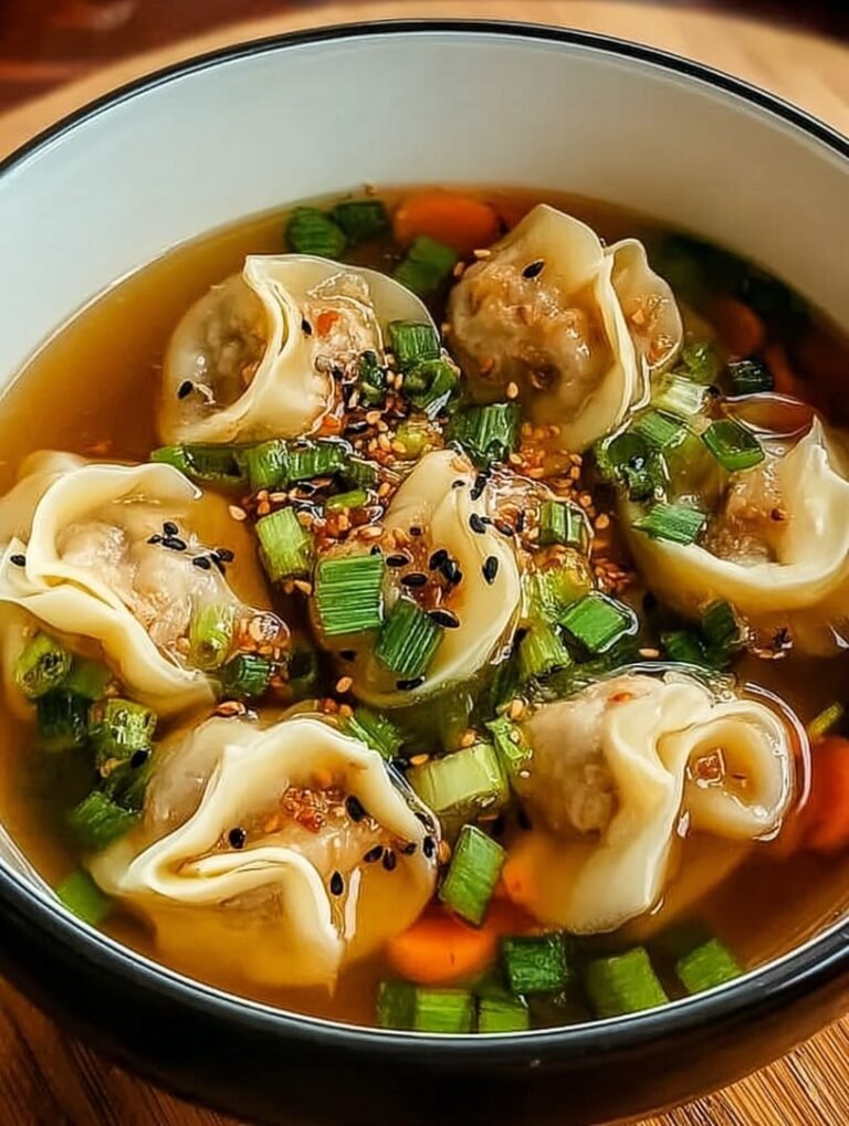Ladle the potsticker soup into bowls and garnish with sliced green onions. A drizzle of extra sesame oil can add an extra layer of flavor. Serve hot and enjoy!
