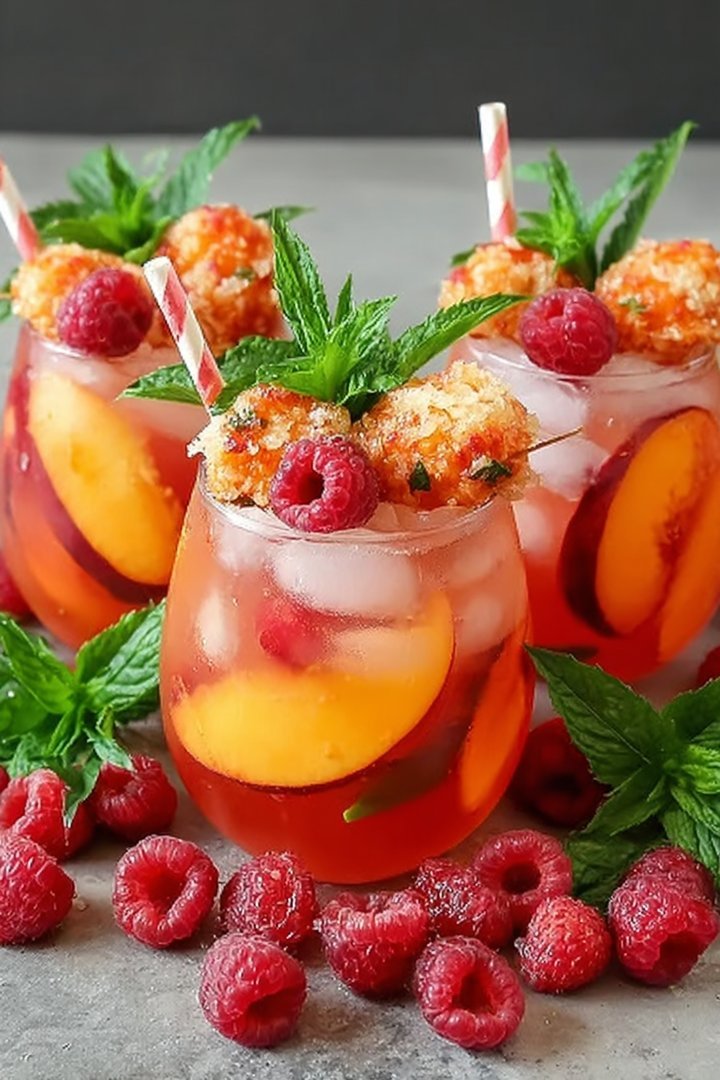 For the most delightful results, start by muddling the raspberries and peaches to release their vibrant flavors. Next, simmer the fruit with water and sugar to create a rich syrup base. After straining, combine it with fresh lemon juice and chill before adding sparkling water.