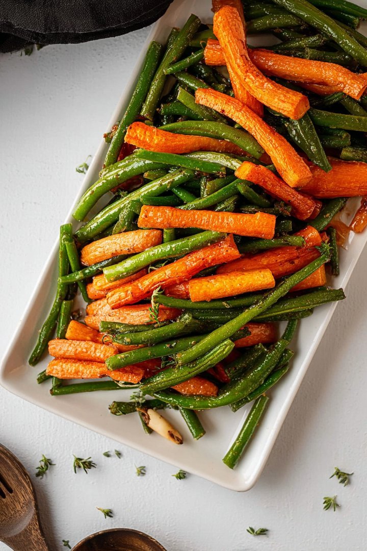 We’re talking about roasted carrots and green beans, transformed from humble vegetables into a star attraction. It’s a simple dish with a sophisticated taste, ready to brighten up any meal with its delightful textures and colors.