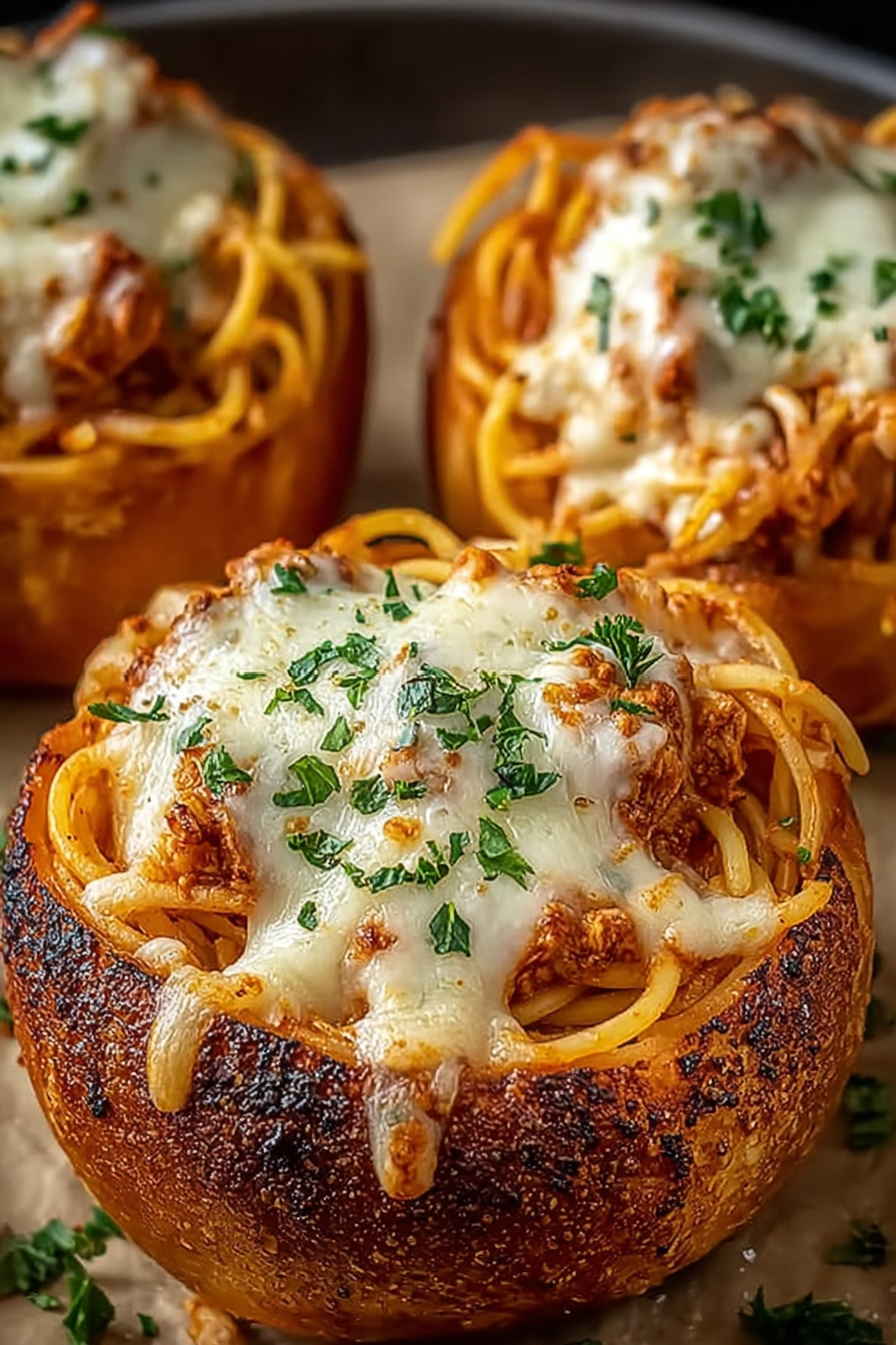 The idea for the Spaghetti Garlic Bread Bowls came to me during a moment of profound, post restaurant reflection. We had just finished a fantastic, hearty pasta dinner, which involved me meticulously scraping every last speck of sauce onto a chunk of leftover bread. I realized I was just recreating a bread bowl with extra steps, involving less structural integrity. Why wait? Why not make the bread the star, the reliable, edible hug that our spaghetti deserves? This recipe is more than a meal; it’s an architectural triumph built on a foundation of pure deliciousness. It’s the kind of dinner where you do not need to worry about table manners because the end goal is always to eat the plate.