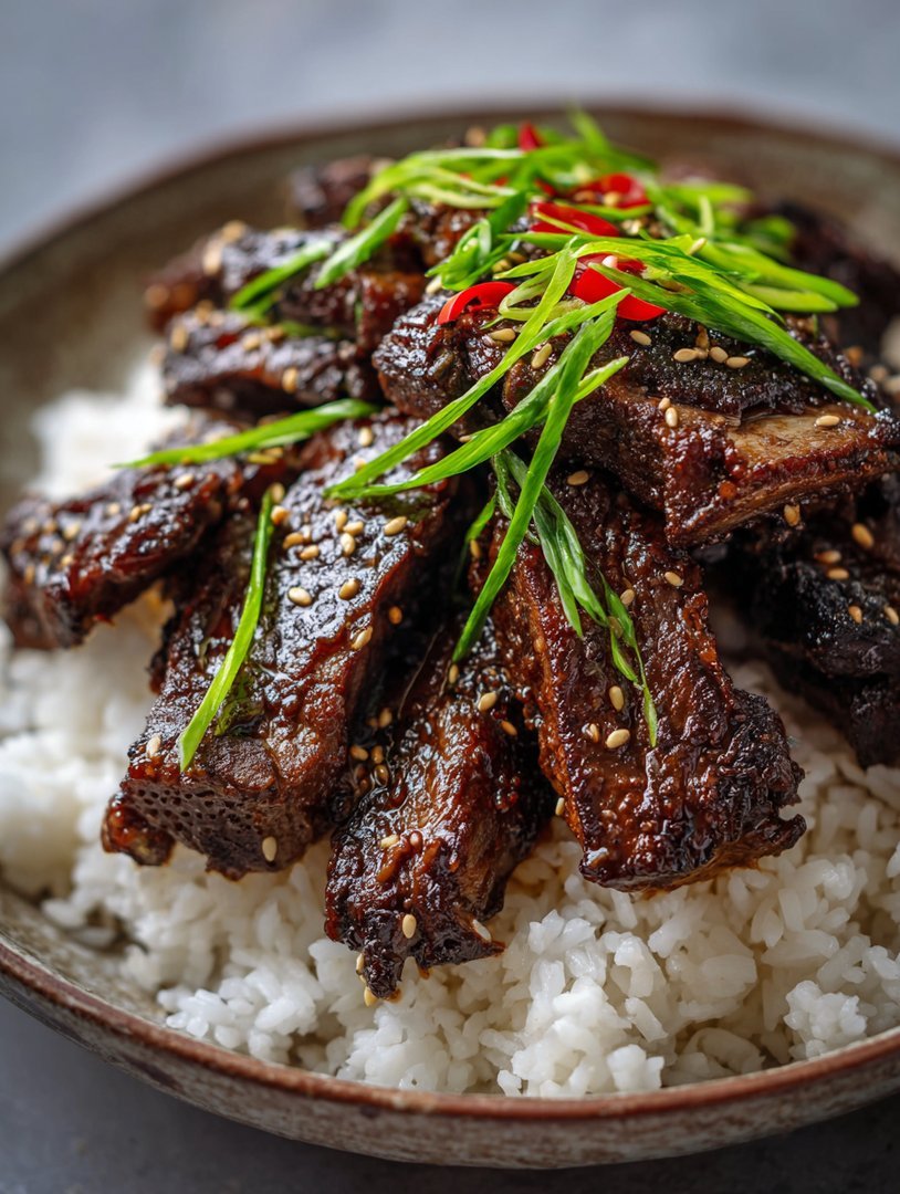 Serve these amazing, tender short ribs immediately with warm steamed rice, kimchi, and perhaps some pickled radishes for contrast. The intense, savory depth of the beef pairs wonderfully with simple sides, letting the stunning flavor of the short ribs shine through.