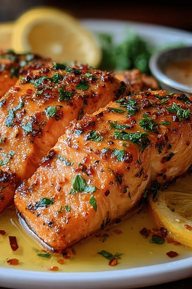 - Step 6: Once the salmon is cooked, drizzle the lemon butter sauce over the fillets. Serve immediately.
